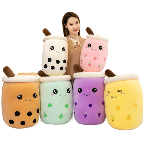 بيع بالجملة ألعاب قطيفة لطيفة 25/35/50/70 مخصصة دمية شاي حليب وسادة ناعمة ألعاب محشوة فقاعات بوبا كارتون لشبكة تخفيف التوتر